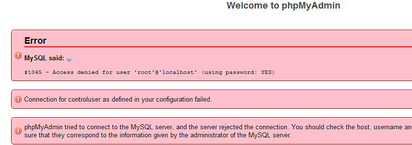 2. Check if $cfg[‘Servers’][$i][‘auth_type’] = ‘config’ if it’s not ‘config’ but ‘cookie’ or ‘http’ then you need to create a new MySQL user account before you change those(username and password) values.